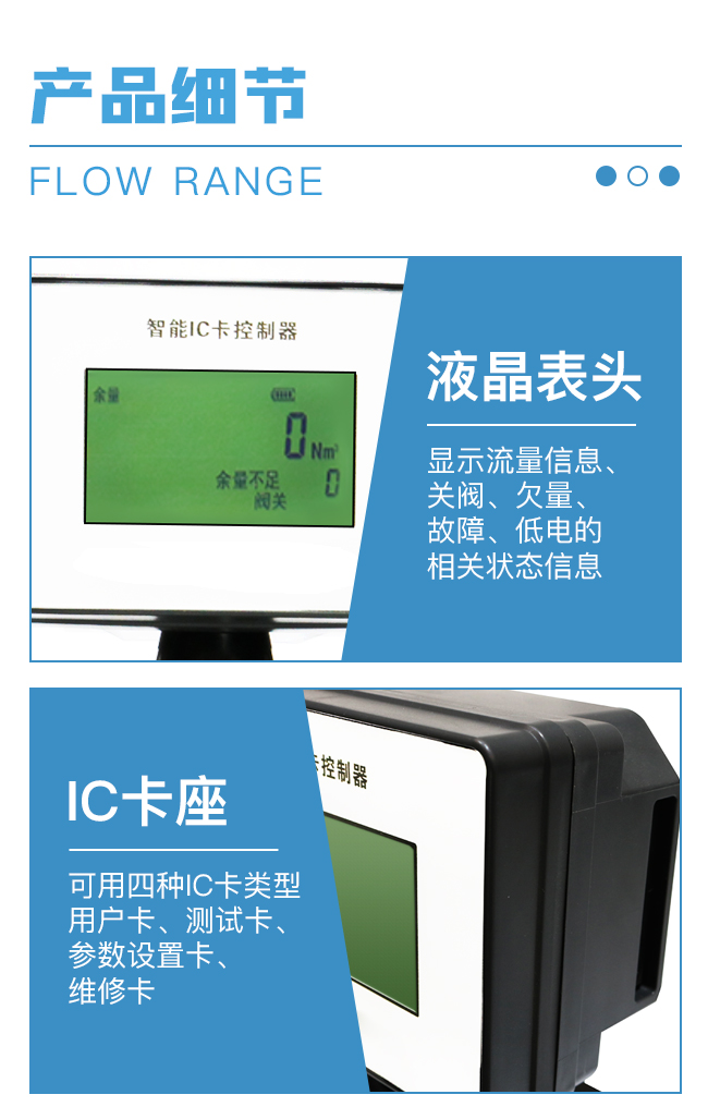 本控制器由新型微功耗電動燃?xì)忾y門和IC卡收費系統(tǒng)組成??膳浣泳哂羞h(yuǎn)傳功能的流量計(渦輪、旋進(jìn)漩渦、腰輪、工業(yè)膜式表)等,實現(xiàn)預(yù)付費和流量控制的功能。