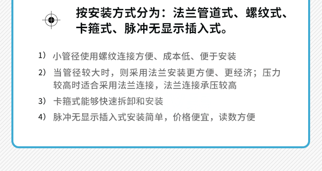 您只需提供管道口徑、使用壓力、介質(zhì)溫度、常用流量等簡(jiǎn)單的參數(shù)和具體要求,我們會(huì)幫您選型、做測(cè)量方案、特殊要求可定制產(chǎn)品。