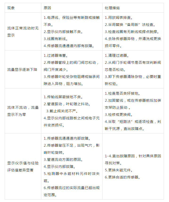 液體渦輪流量計安裝圖與故障解決表格分析